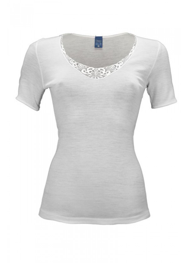 MANUFAT Maglia Donna Mezza Manica Bordo Pizzo "LANA/SETA"