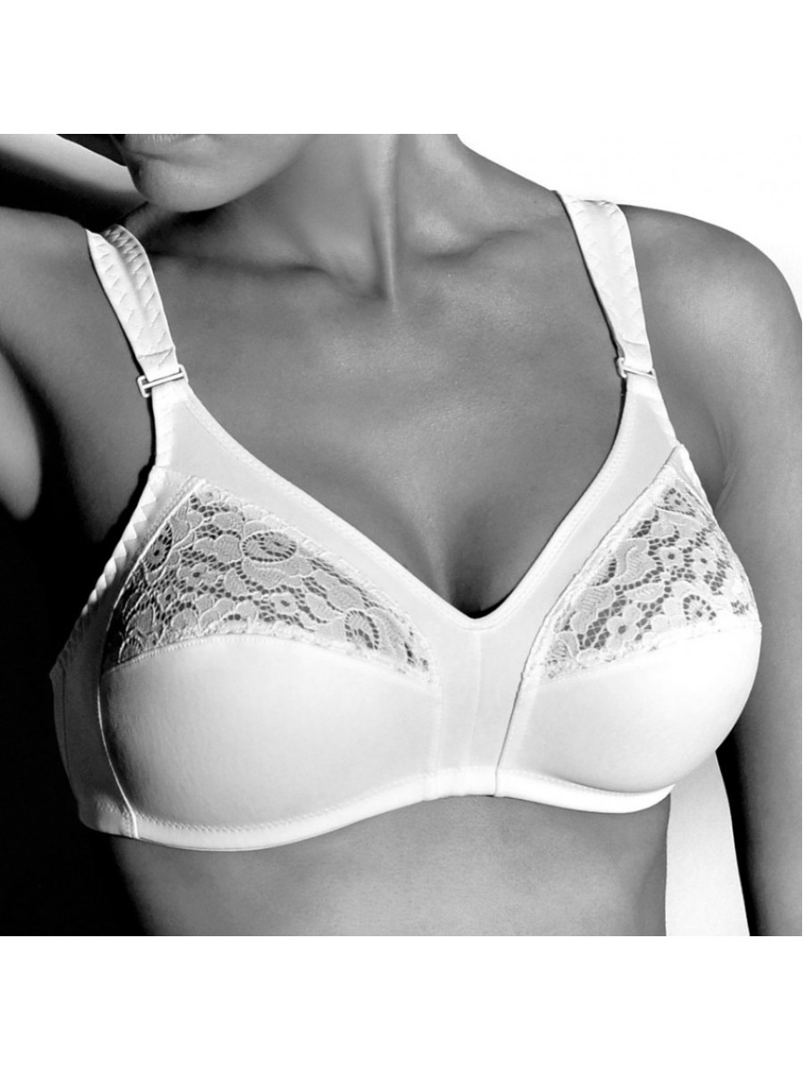 Reggiseno con coppe foderate in cotone per un contatto naturale sulla pelle. Spalline larghe e confortevoli, foderate in cotone per evitare arrossamenti sulle spalle. Cuciture piatte invisibili sotto i vestiti.