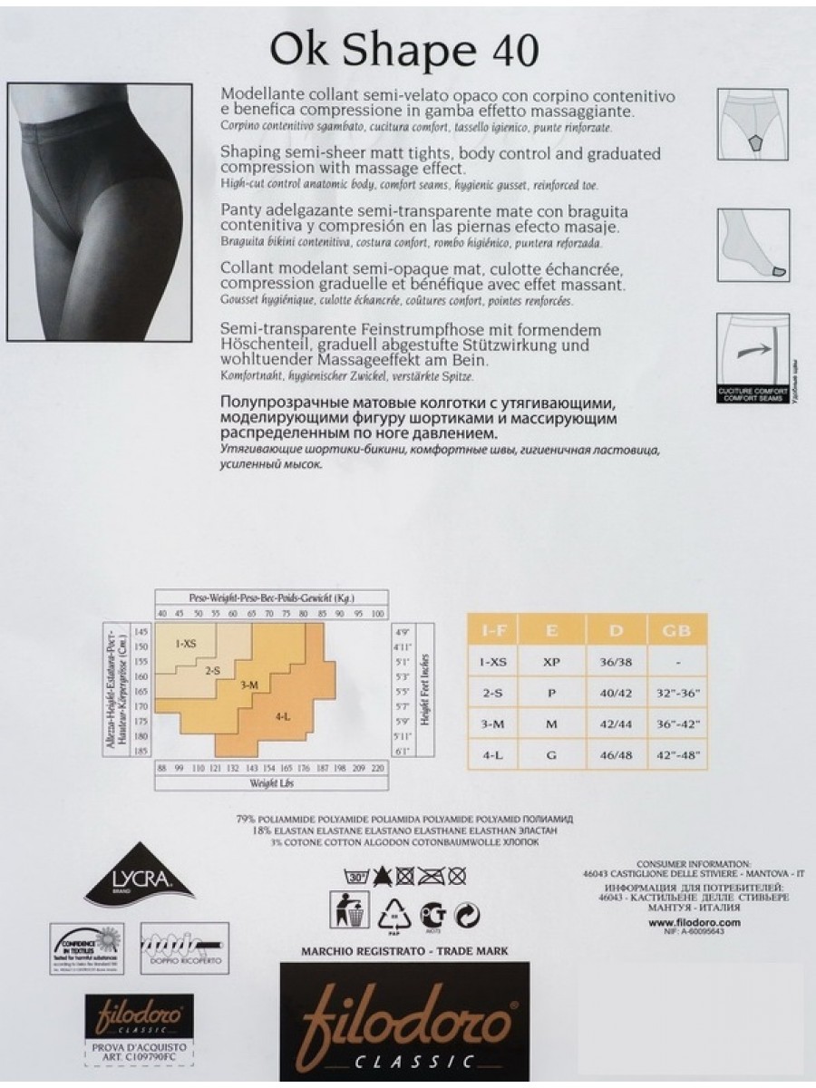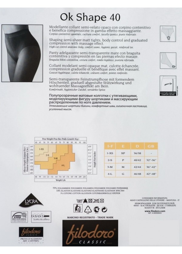 • FILODORO Collant MODELLANTE  " OK SHAPE 40 "