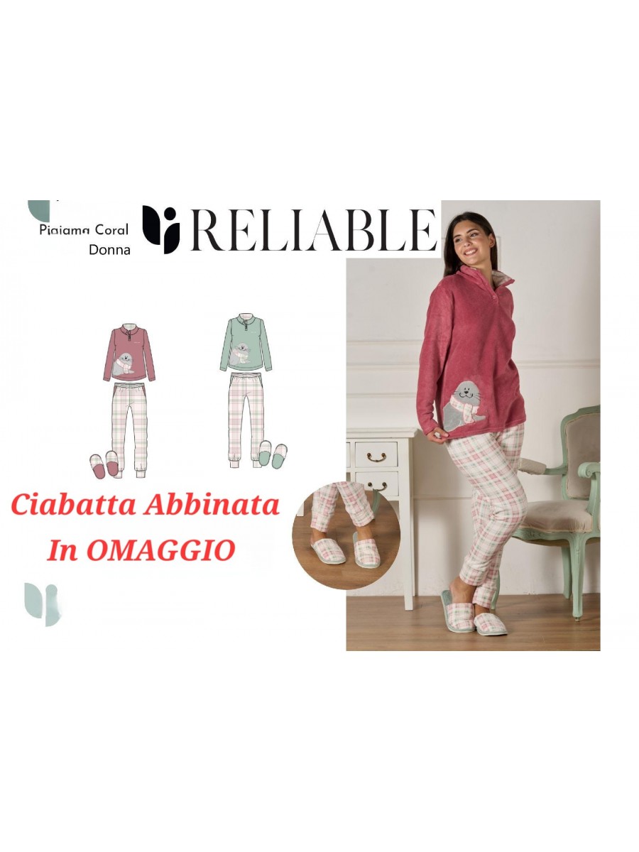 Pigiama Donna Coral ORSETTO Con Ciabatta In Omaggio